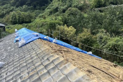 愛媛県宇和島市K様邸にて瓦屋根からガルバリウム鋼板への屋根の吹き替え工事を行いました。