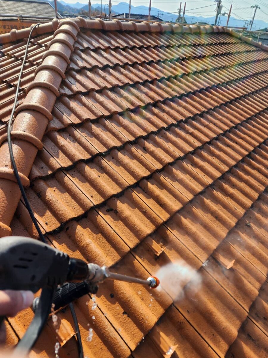 時間をかけて丁寧にモニエル瓦特有のスリラー層という層を洗いはがしていきます。