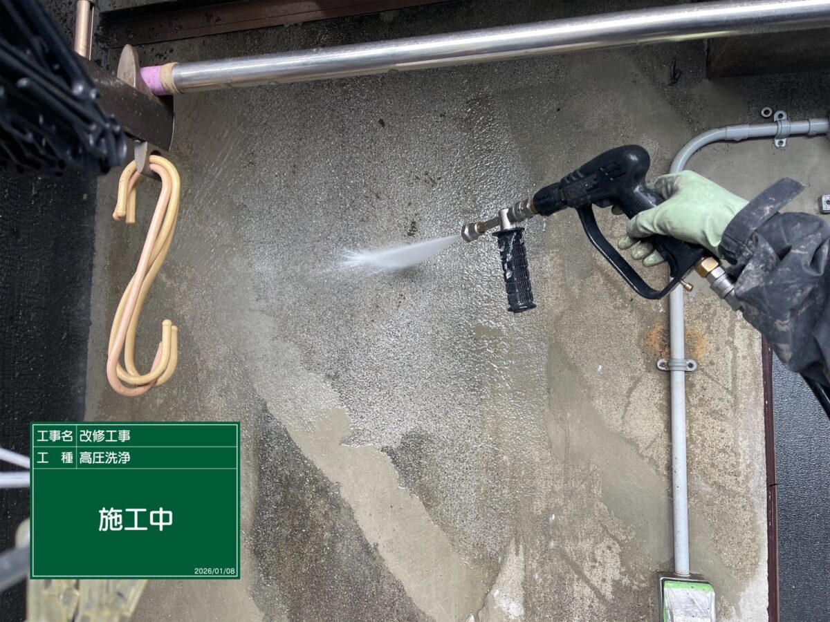 先日まで壁の下地処理まで進んでおります。板金の新設工事、外壁の高圧洗浄で水洗いからの作業をしていきます。