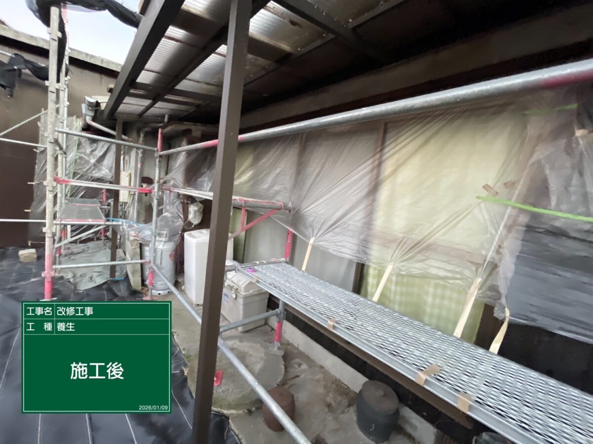 - 植物への配慮:庭やベランダの植物が養生されると、日光や風が遮られて枯れてしまうことがあります。大切な植物がある場合は、作業後に養生を速やかに外してもらうか、移動させるなど、業事前に打ち合わせておきます。