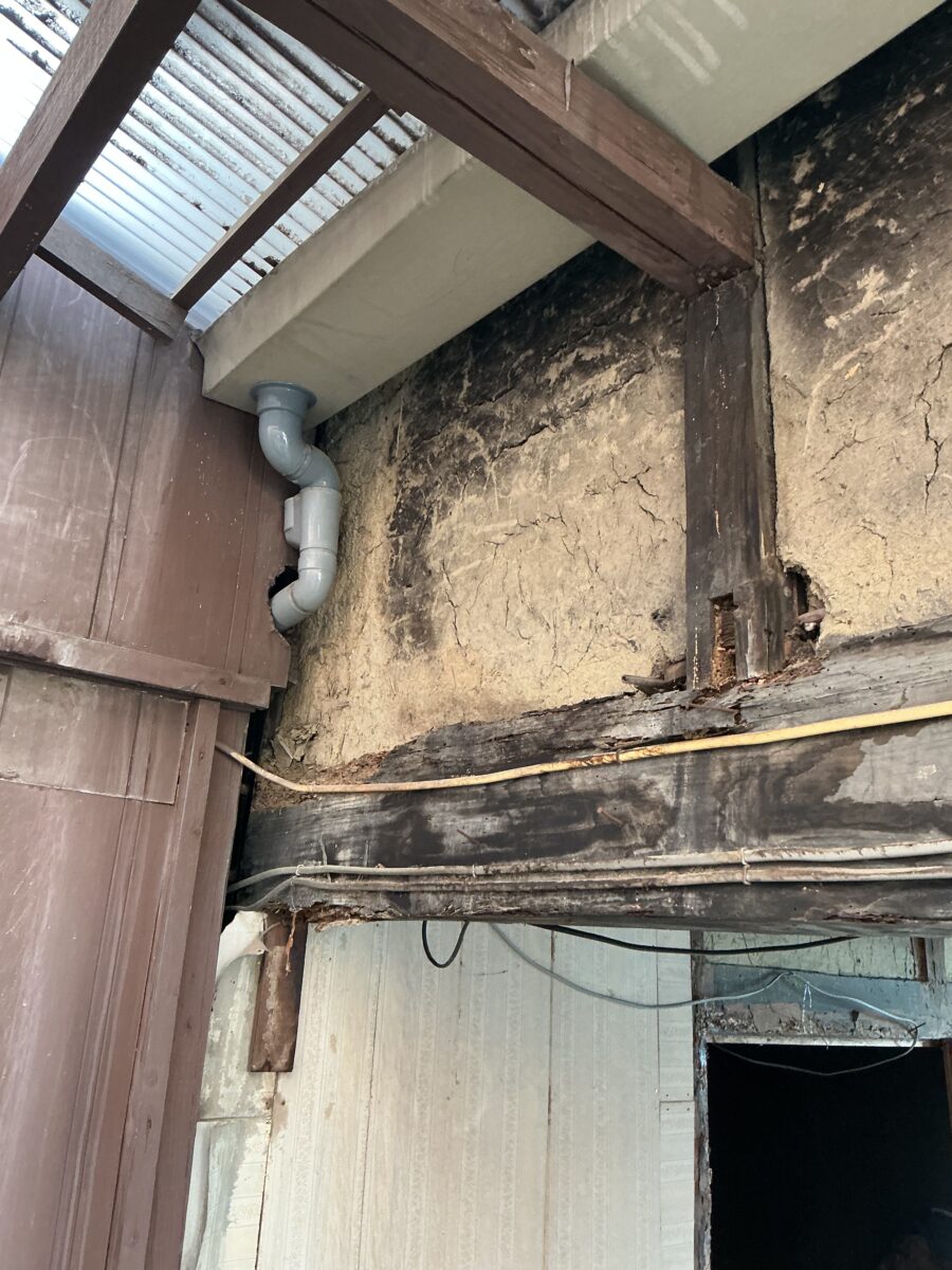 屋根から壁を伝って雨水が!大事な柱も腐食してしまってます!