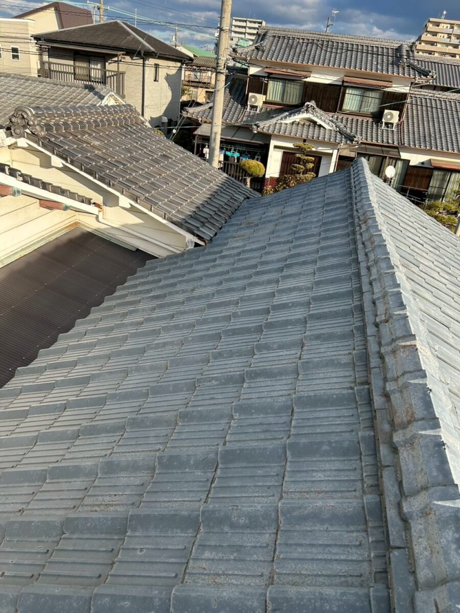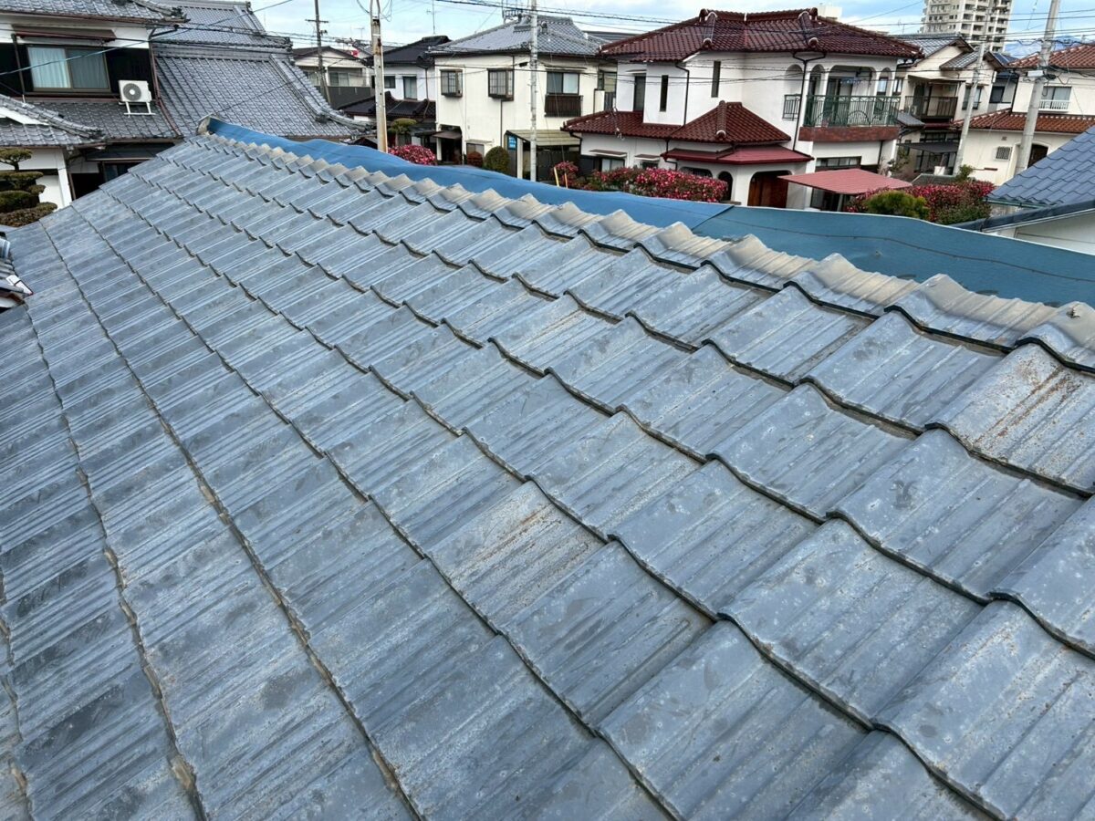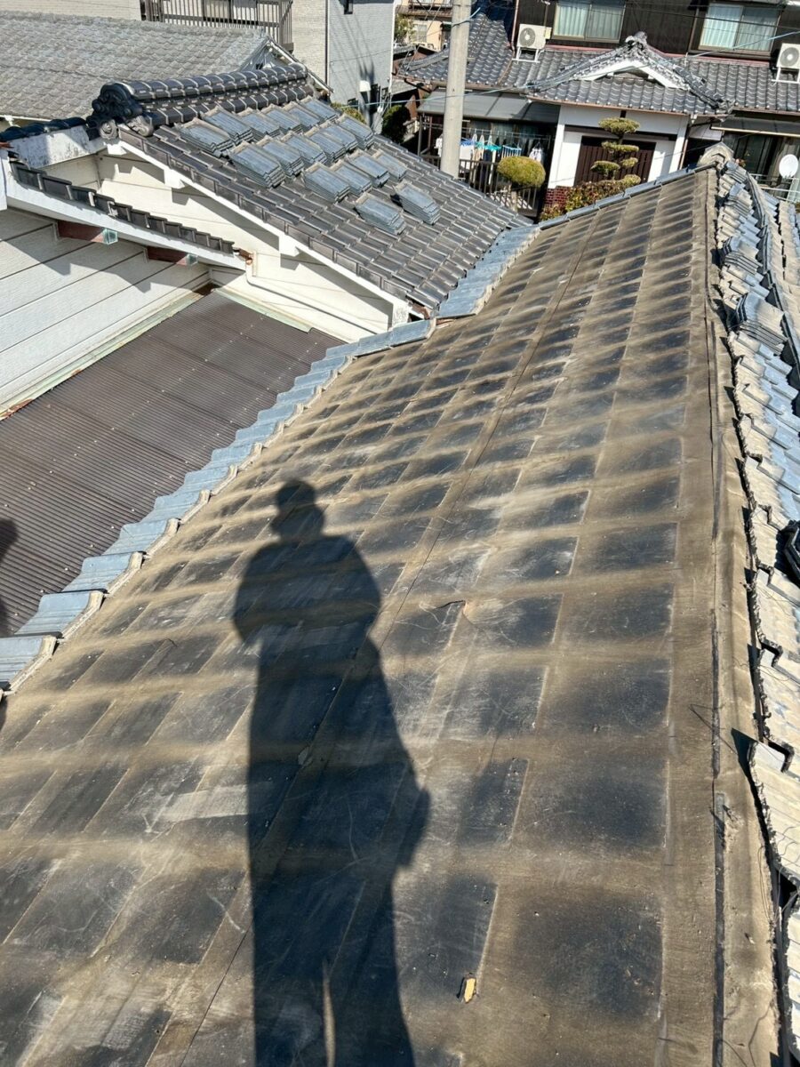セメント瓦で屋根の形状は切妻屋根になっており片面側の下地(ルーフィング)の劣化によって雨漏りを起こしておりました。この度はは「葺きなおし」での施工法にて修繕のご依頼をいただきました。