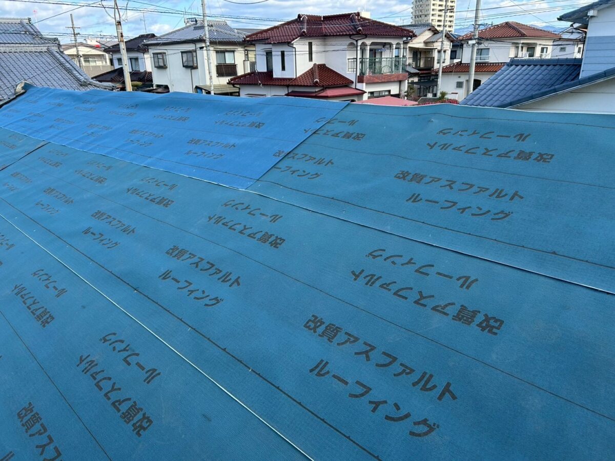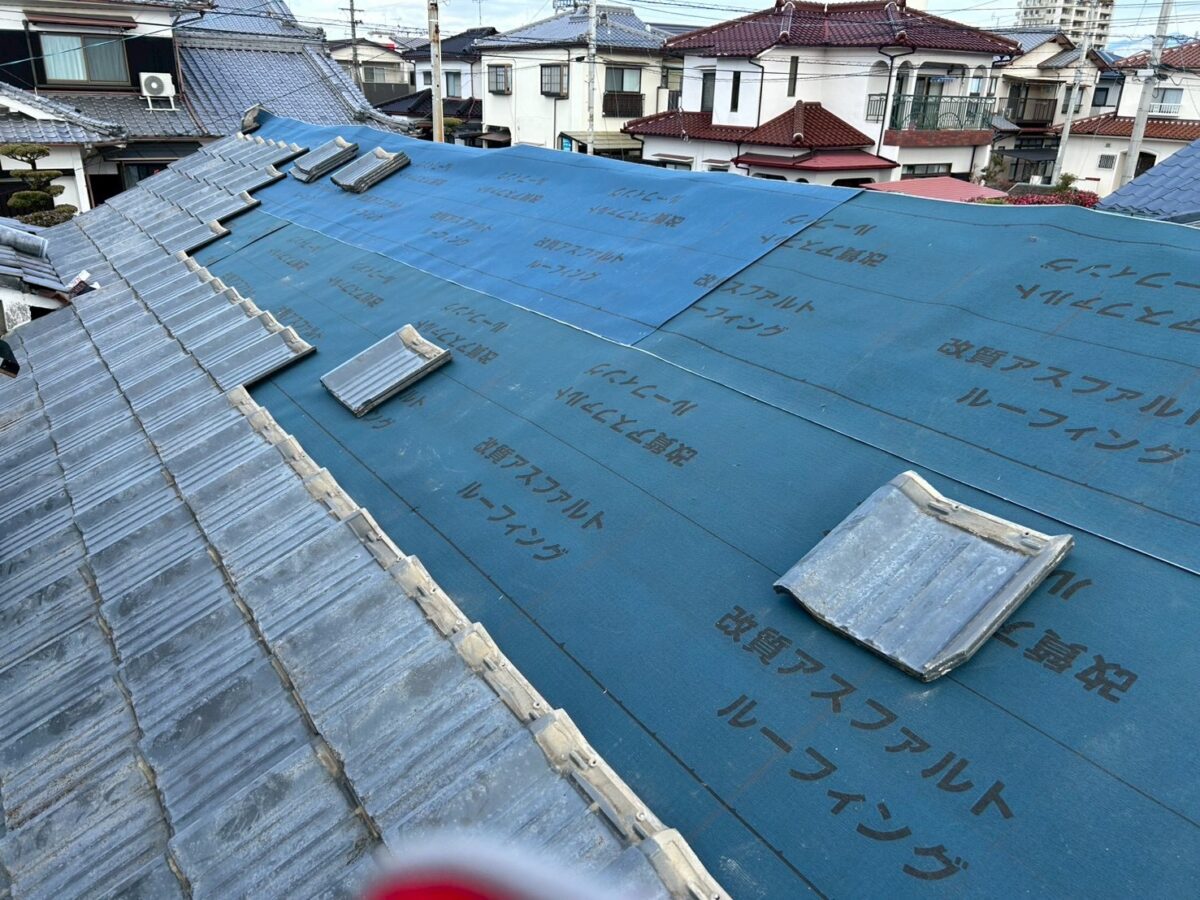 劣化しているルーフィング材を綺麗に剥ぎ取り、新たにルーフィング材をひき直します!