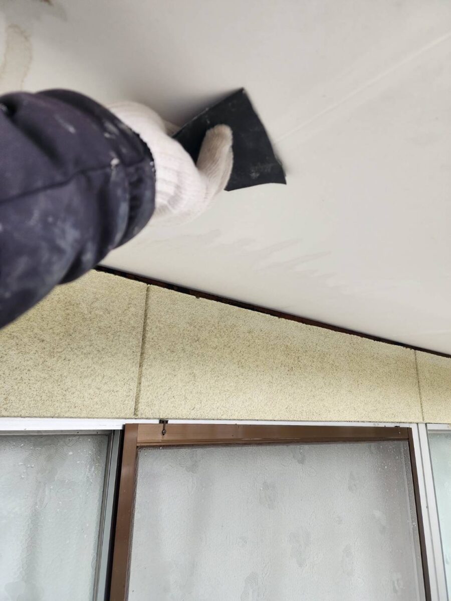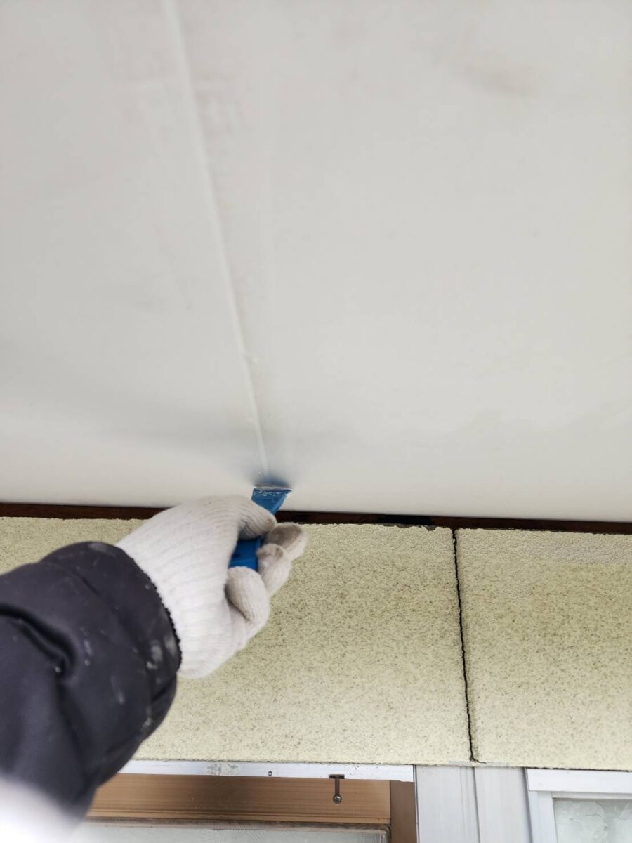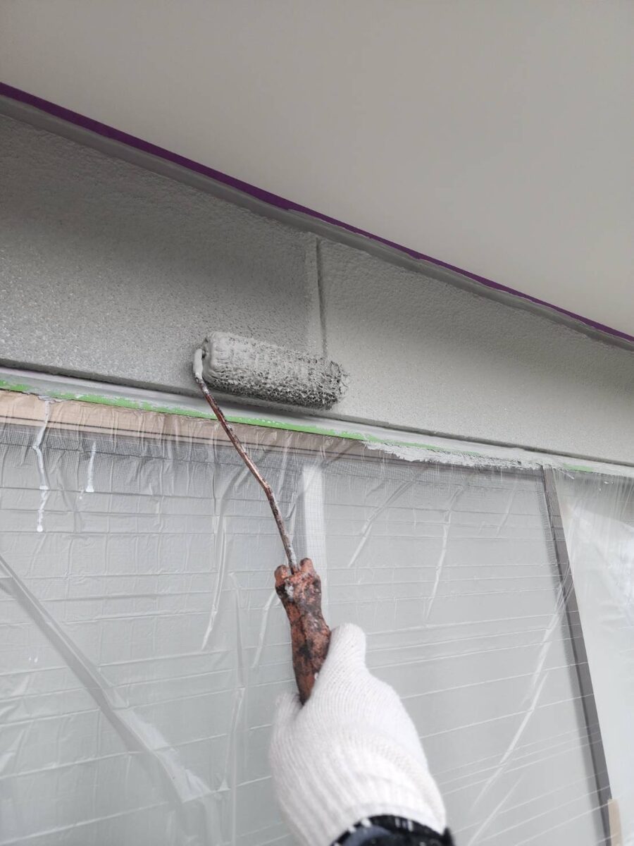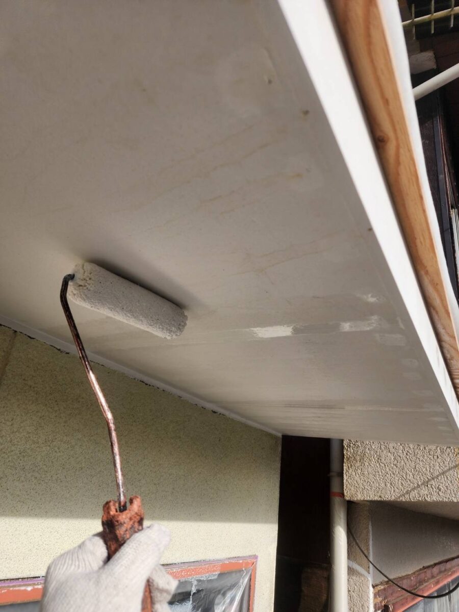 次に軒天の仕上げ材となるトップ1回目(水性ケンエース)を塗布していきます!