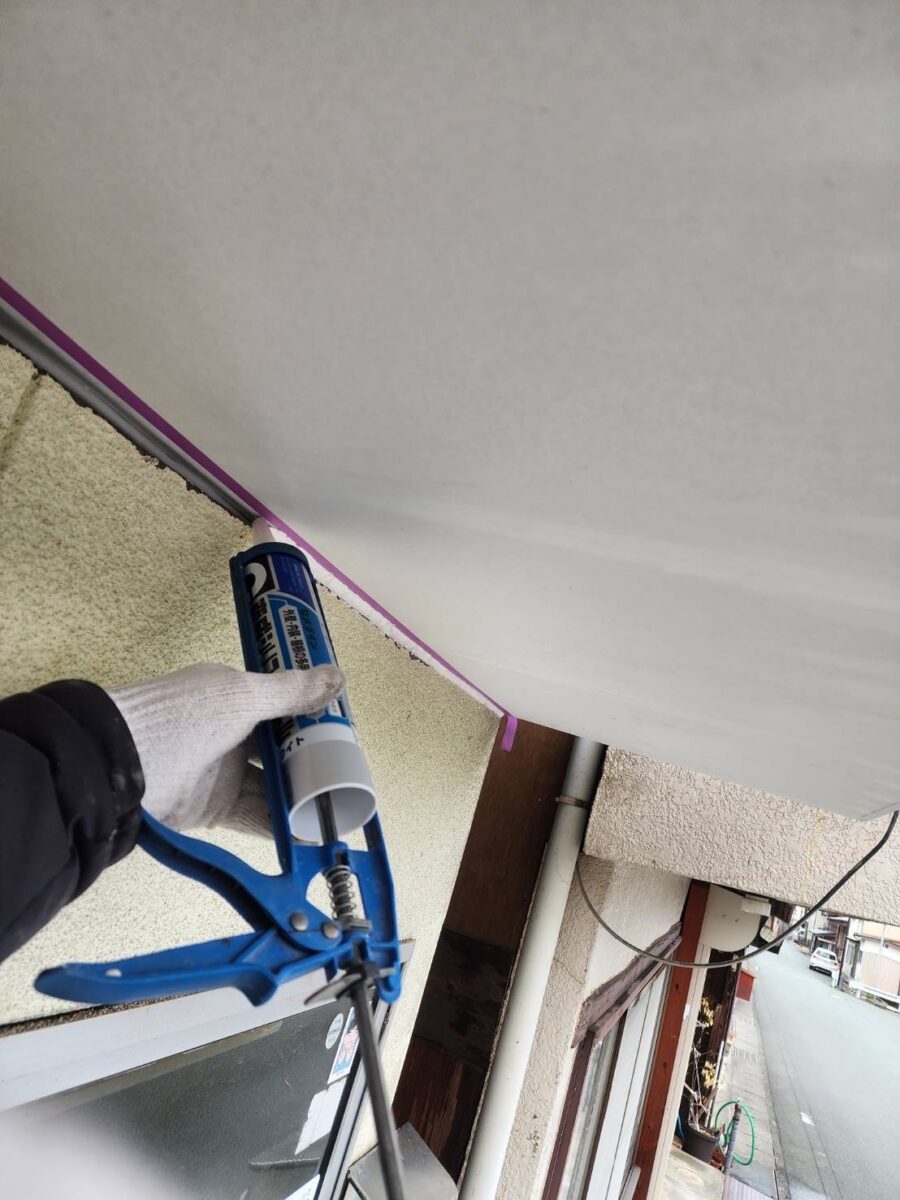 次に庇の加工廻りの隙間を変成シリコンコーキングを使って埋めていきます!