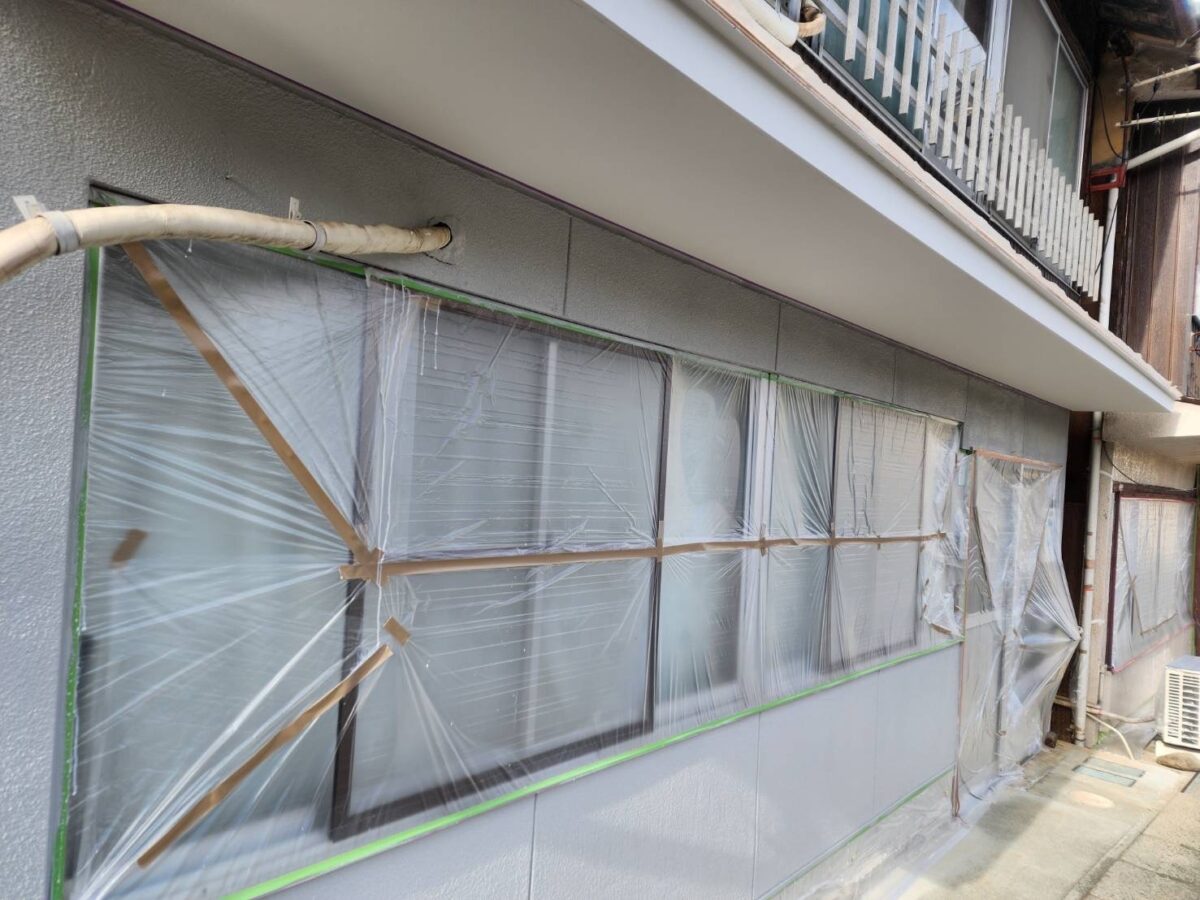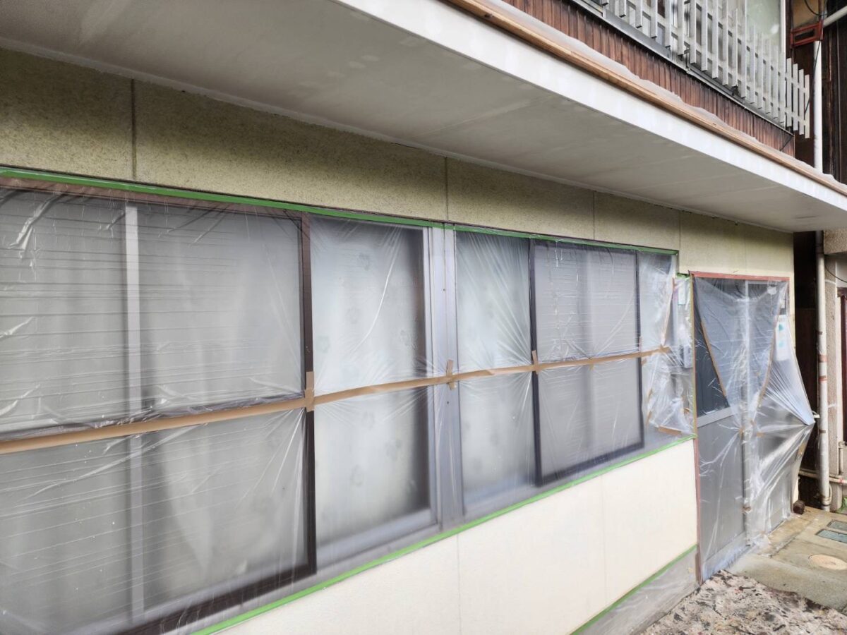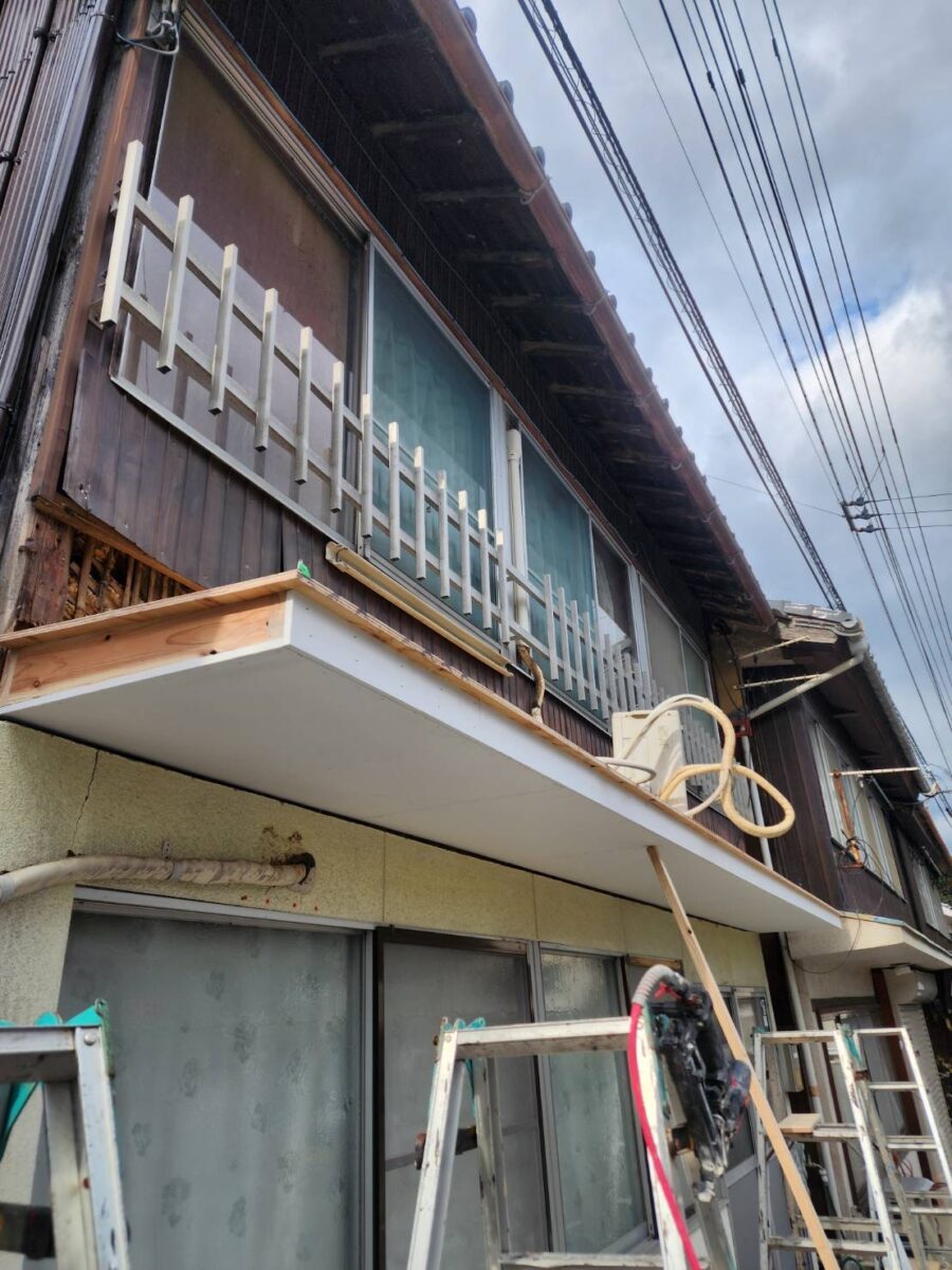 愛媛県喜多郡内子町S様邸にて庇の新設工事・外壁の塗装工事をおこなっております。