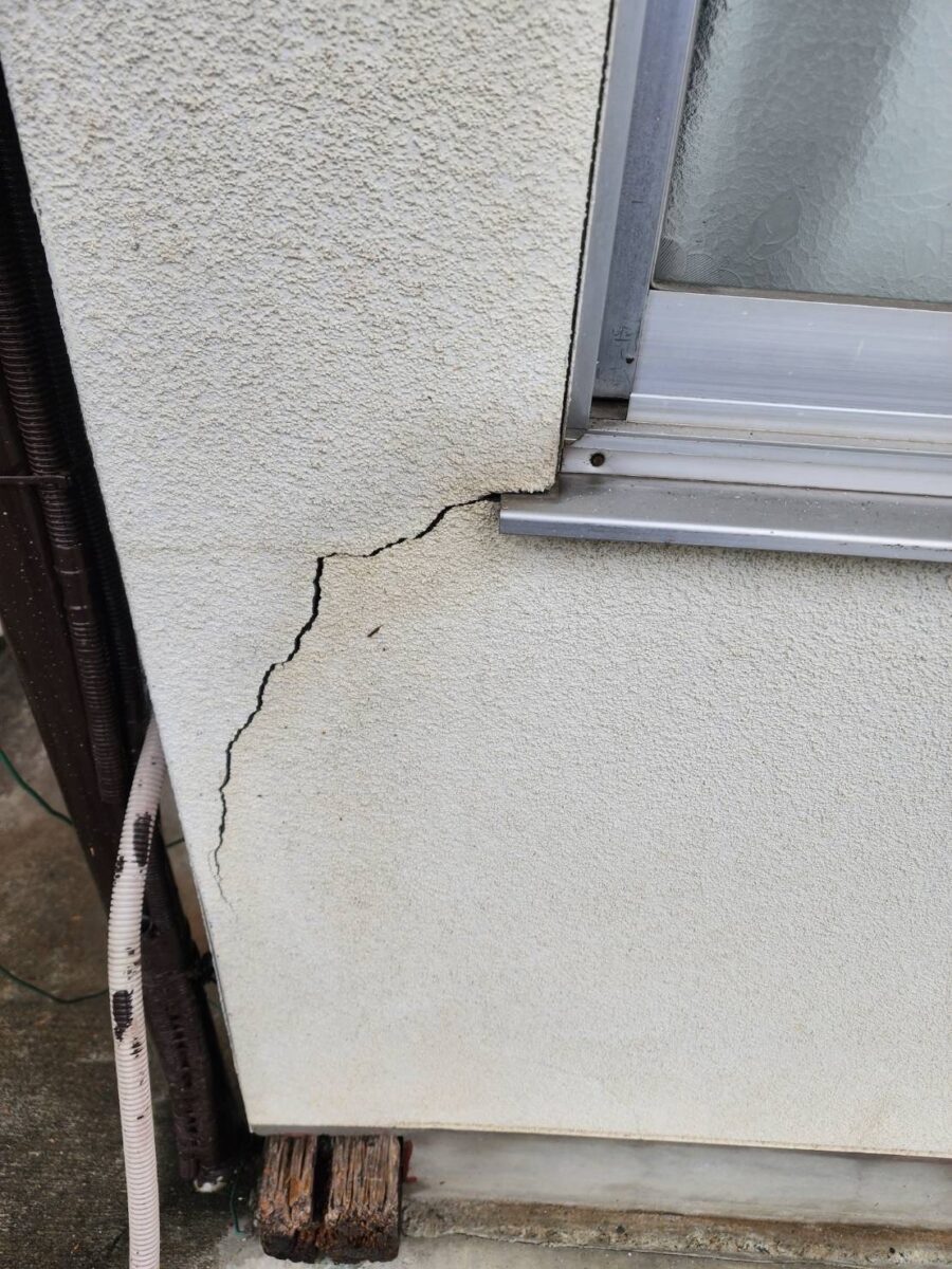 壁面のひび割れも変成シリコンコーキングで補修していきます!