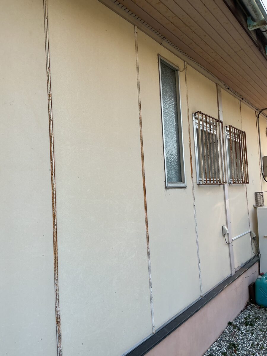 築40年程の住宅の現地調査を行った際、外壁や付帯部を中心にサビの進行が目立つ状態でした。