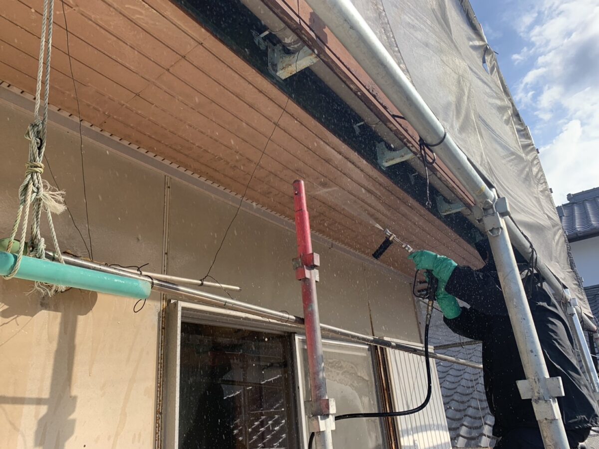 水洗い(高圧洗浄)、下地処理からおこなっていきます!