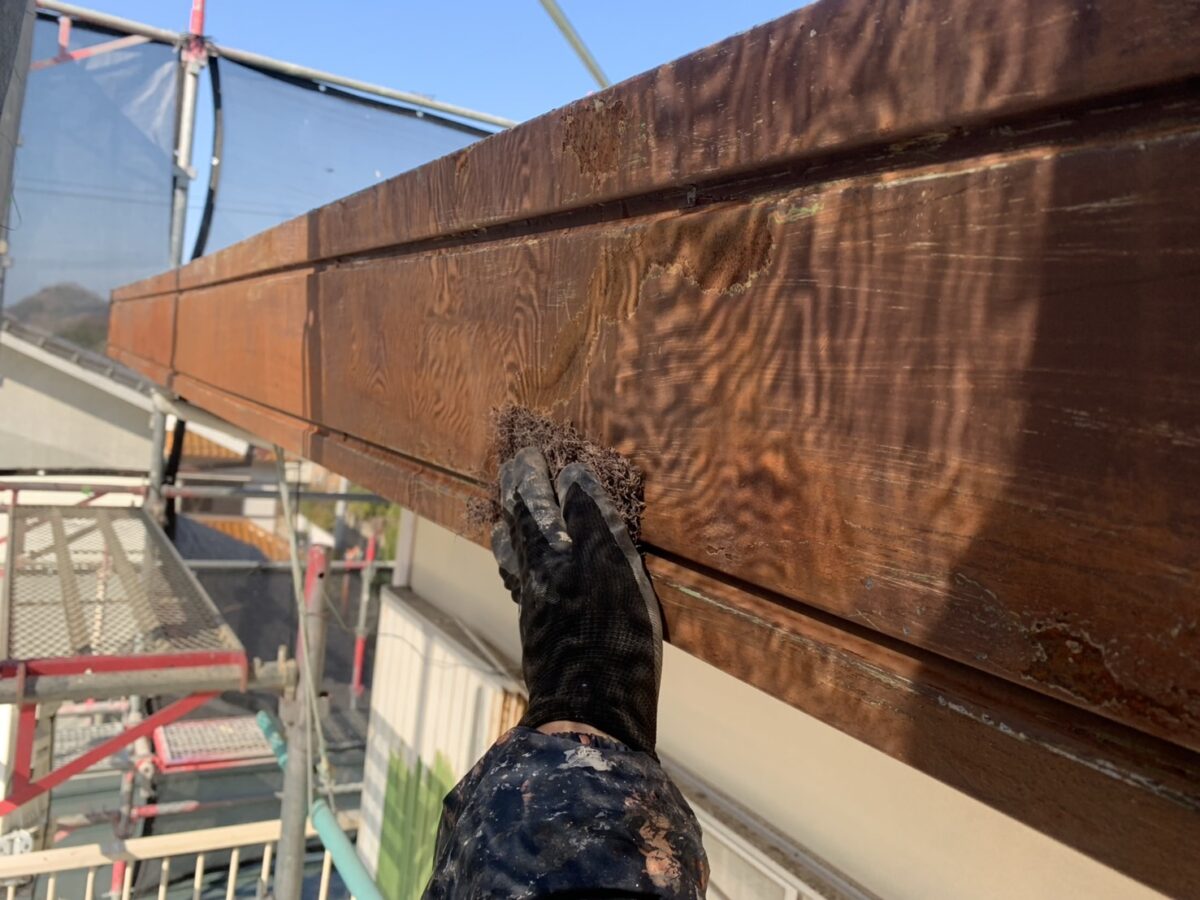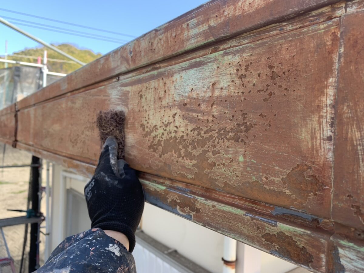 サビが発生している部分については、まずサビの状態を確認し、進行を抑えるための下地処理を行います。表面に残っている浮きサビや脆くなった部分を丁寧に処理したうえで、サビの進行を抑制する効果のある下塗り材を塗布します。