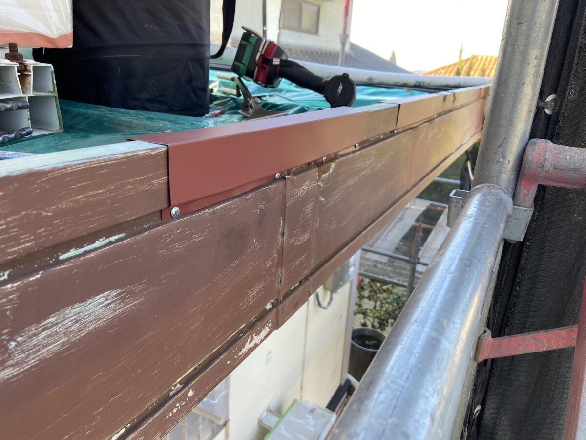 愛媛県松山市I様邸にて雨漏り修繕工事・板金補修・外壁の塗装工事をおこなっております。