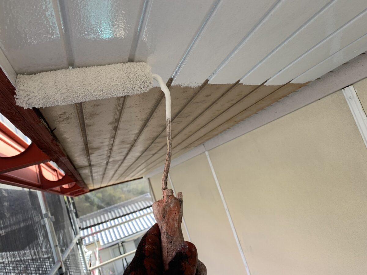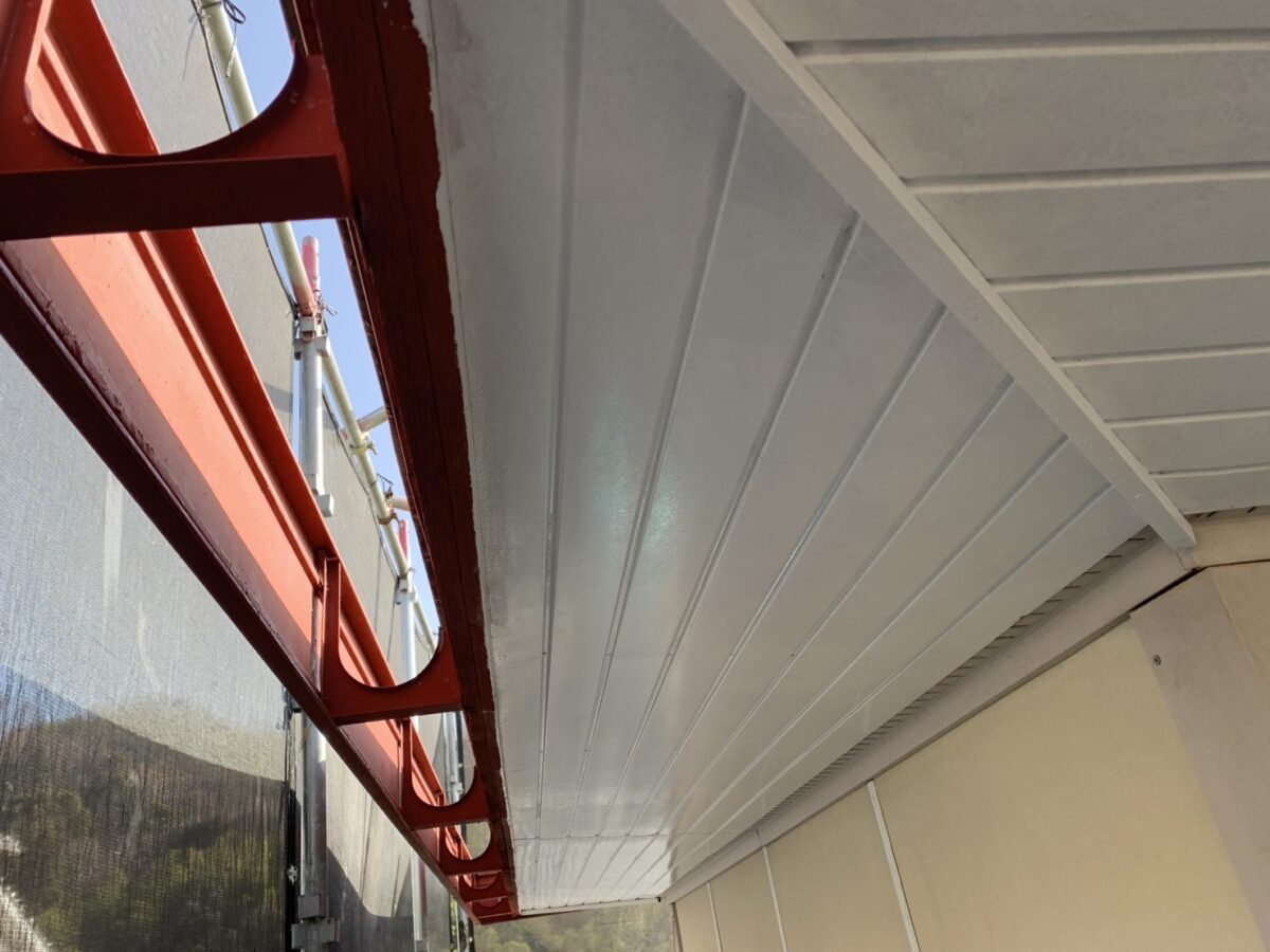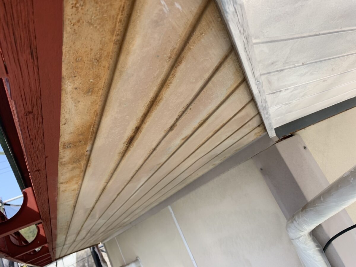 軒天板金部分ではサビの進行が見られましたが、状態、仕上げ材に応じてを使用するなど「日本ペイント ハイポンファインデクロ」赤と白の対応を行い、サビ止めの仕上がりもきれいに整いました。