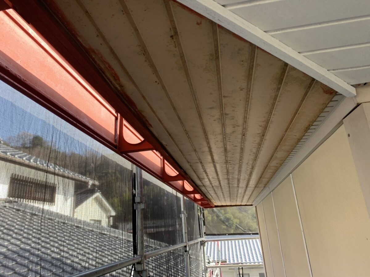 軒天板金部分ではサビの進行が見られましたが、状態、仕上げ材に応じてを使用するなど「日本ペイント ハイポンファインデクロ」赤と白の対応を行い、サビ止めの仕上がりもきれいに整いました。