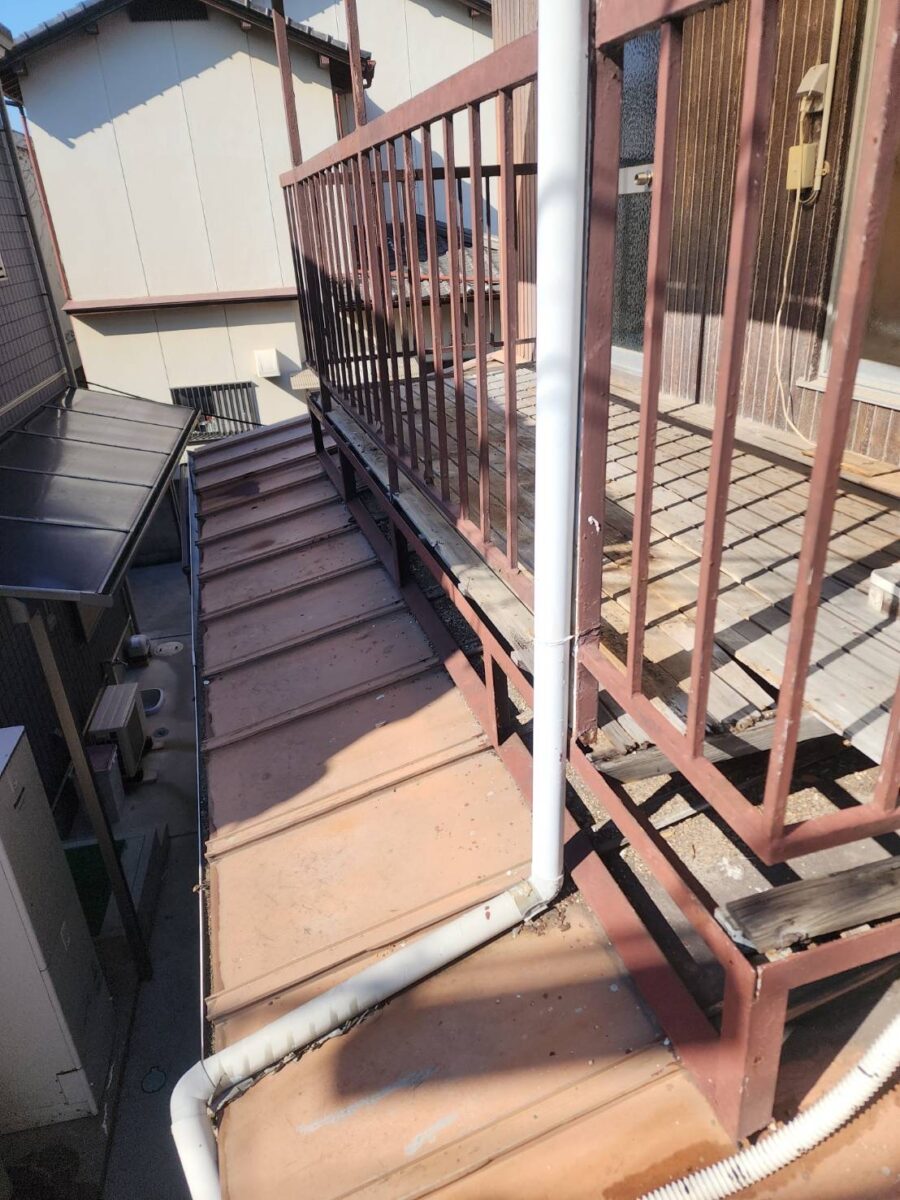 ベランダ下の屋根材も板金素材で全体的にサビが進行してしまっております。