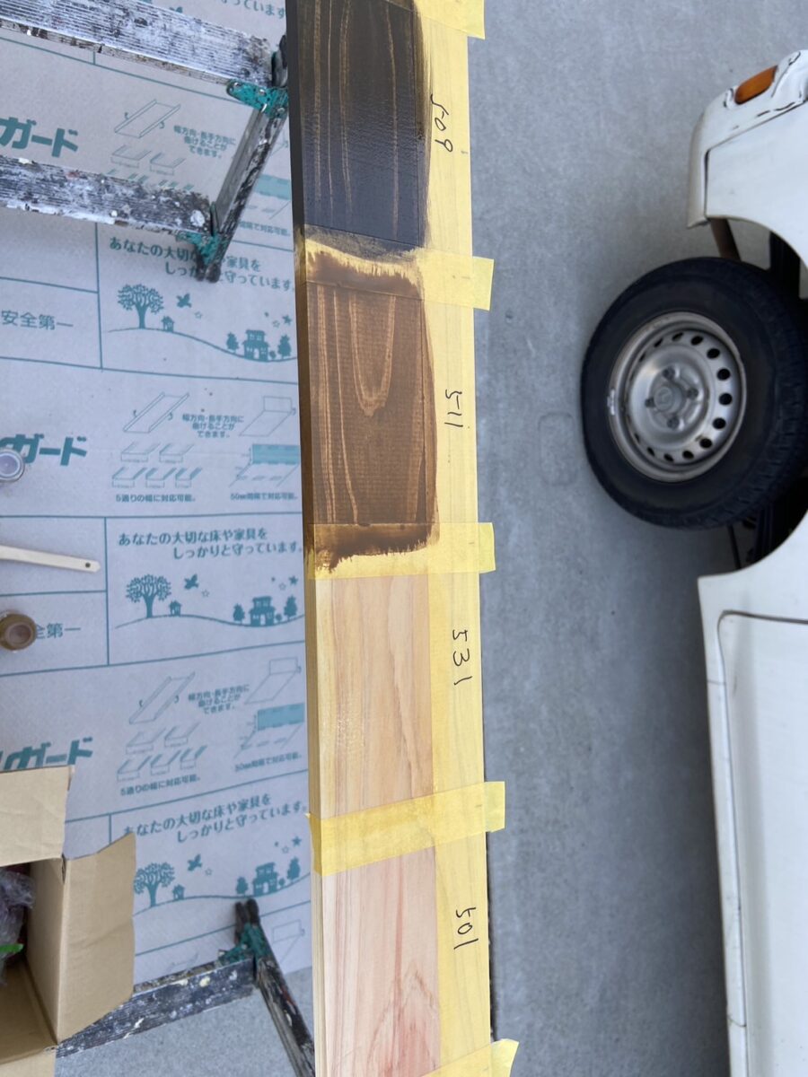 キシラデコール ウォルナットで防腐処理をおこないました。