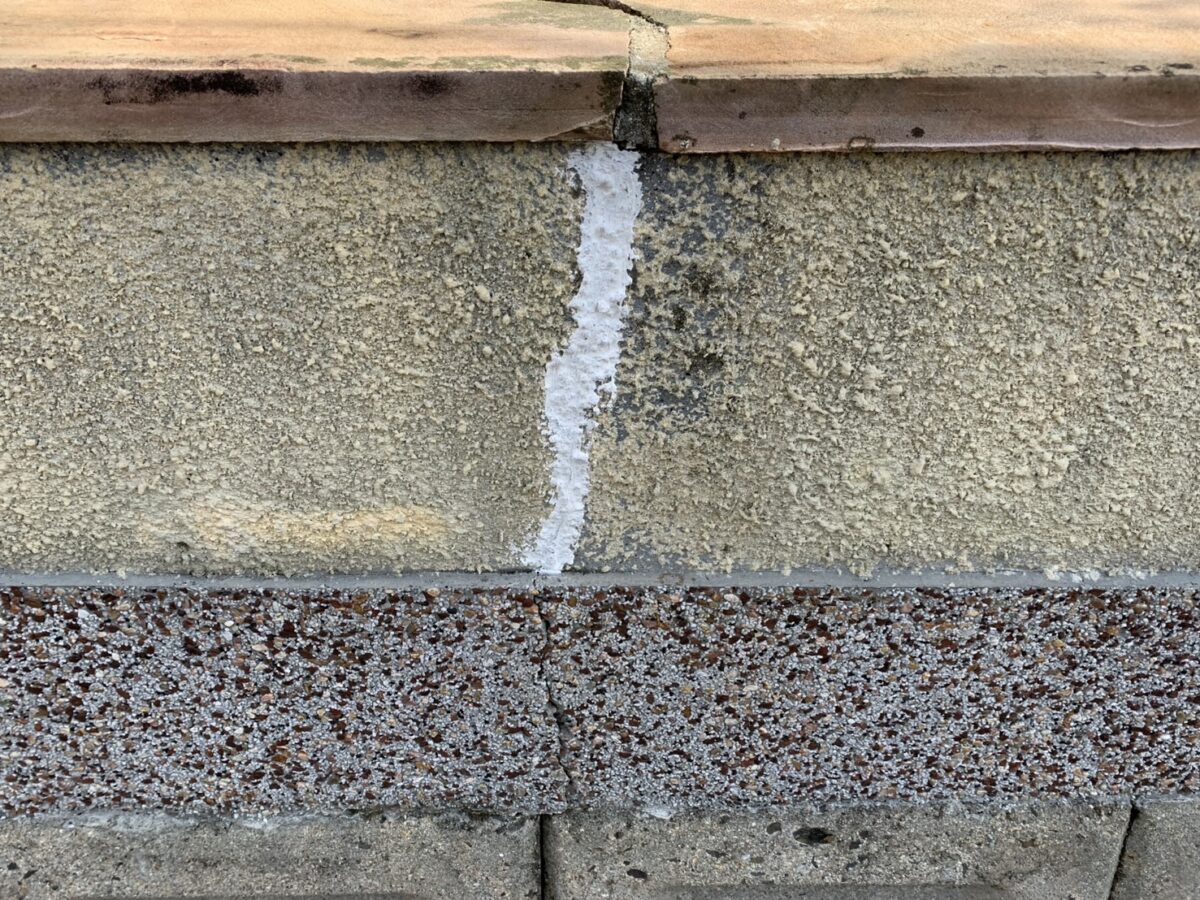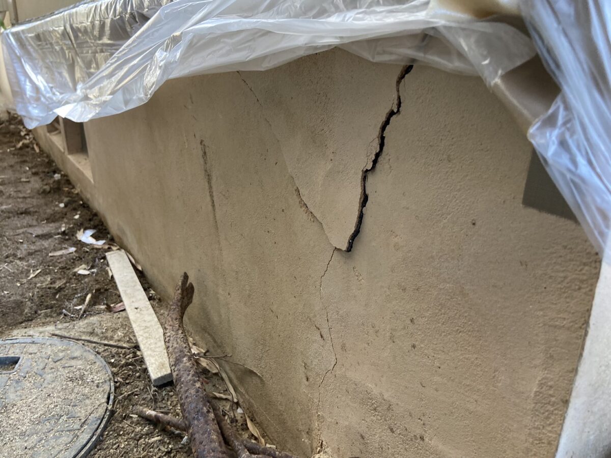- ひび割れの方向性:乾燥収縮による縦方向の単発的なクラックではなく、基礎の横方向に連続して発生していました。これは構造的な応力が関与している可能性が高い特徴です。