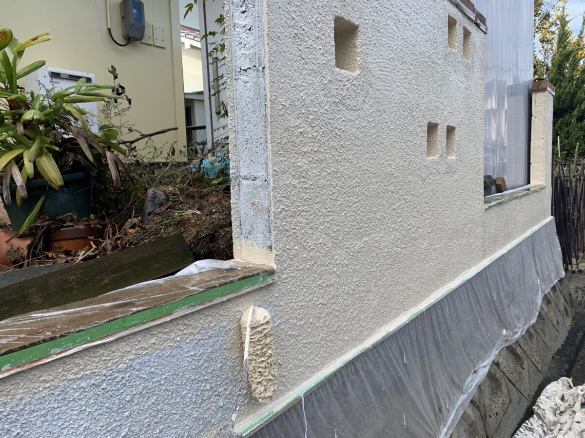 愛媛県松山市にお住いのI様邸にて屋根の塗装工事、基礎修繕工事、フェンス取り付け工事をおこなっております。