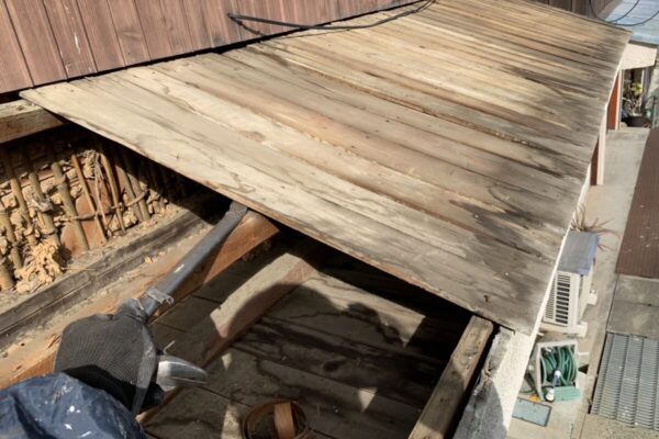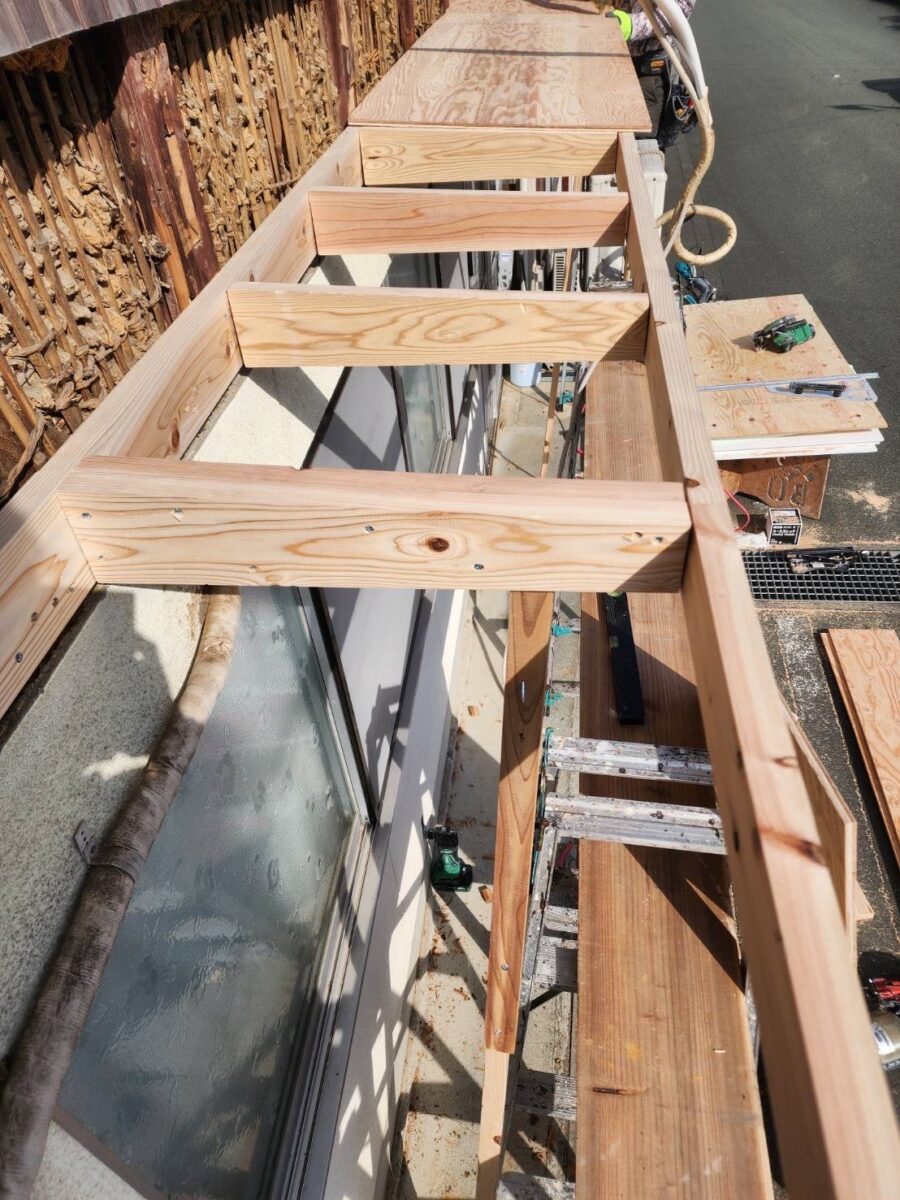 愛媛県喜多郡内子町S様邸にて庇の解体・新設工事をおこないました。