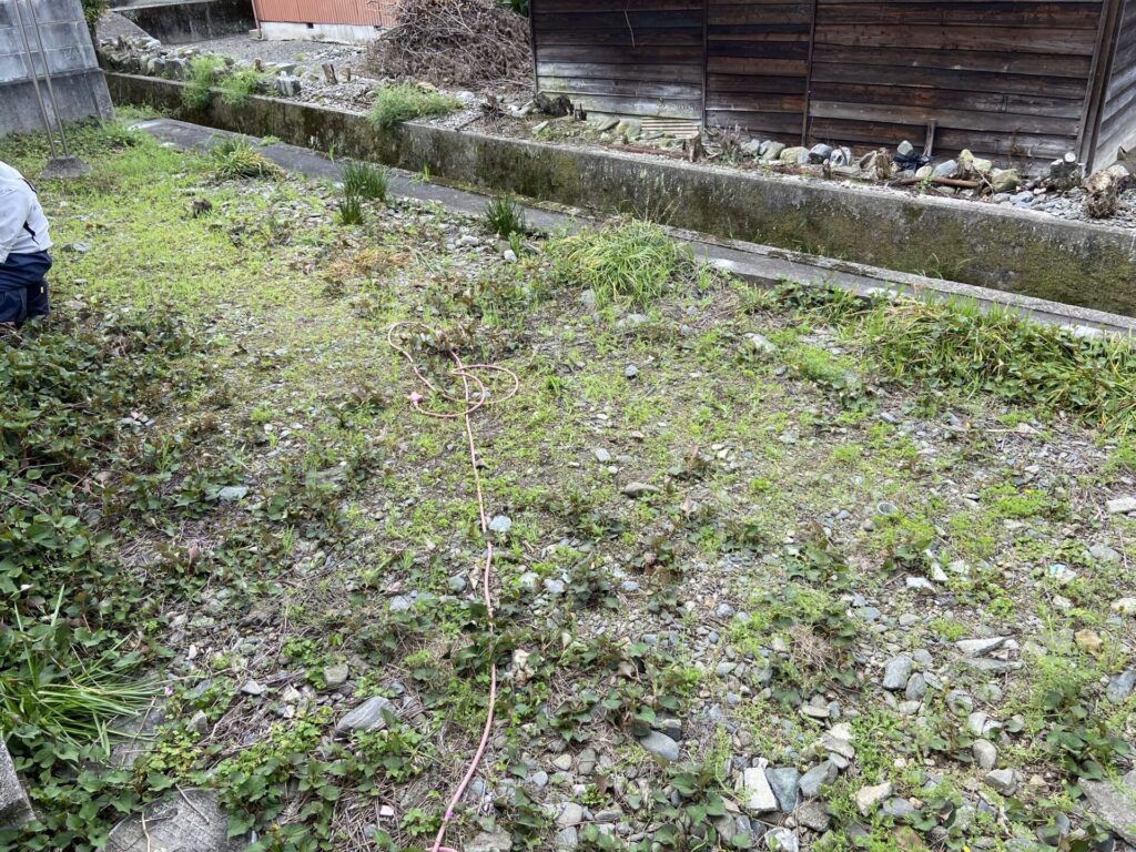 足元が悪いため整地を行い防草シートと砂利敷を行う予定です。