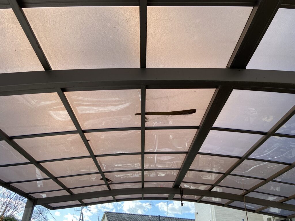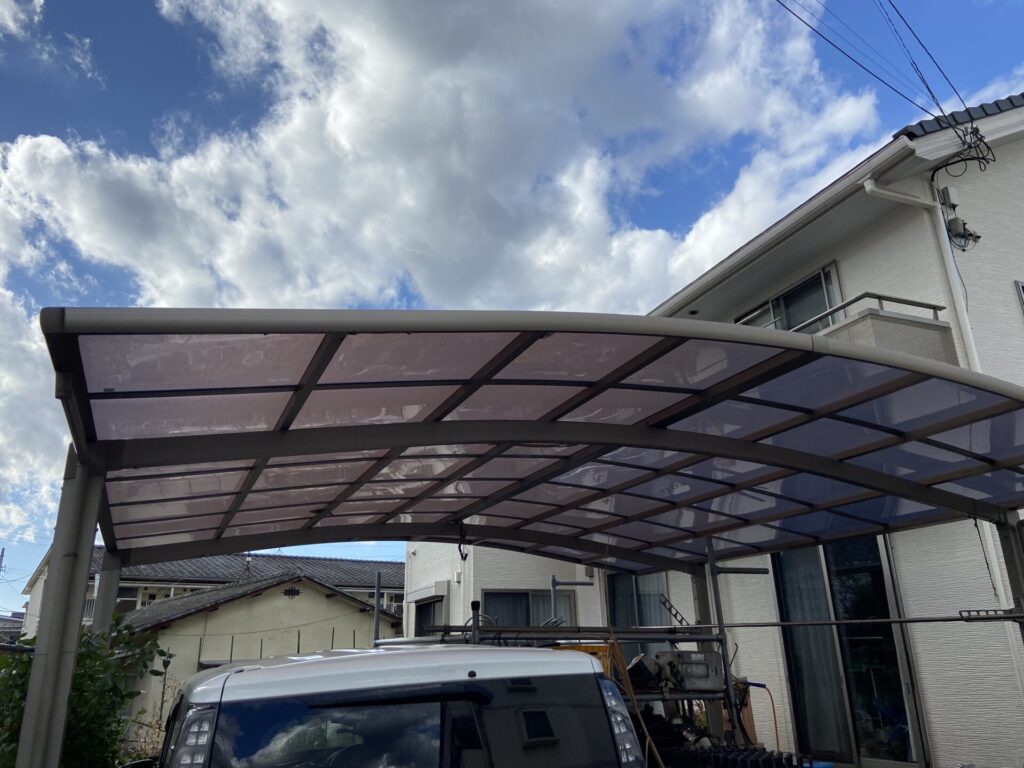 愛媛県松山市にてカーポート(屋根材)修繕工事の依頼を受けて現地調査に伺いました。