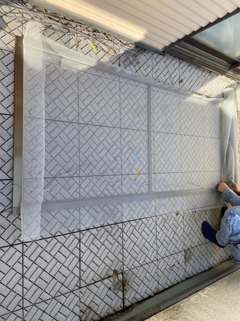 カーポートの屋根材を張替えした後、網戸を張りに行きました。