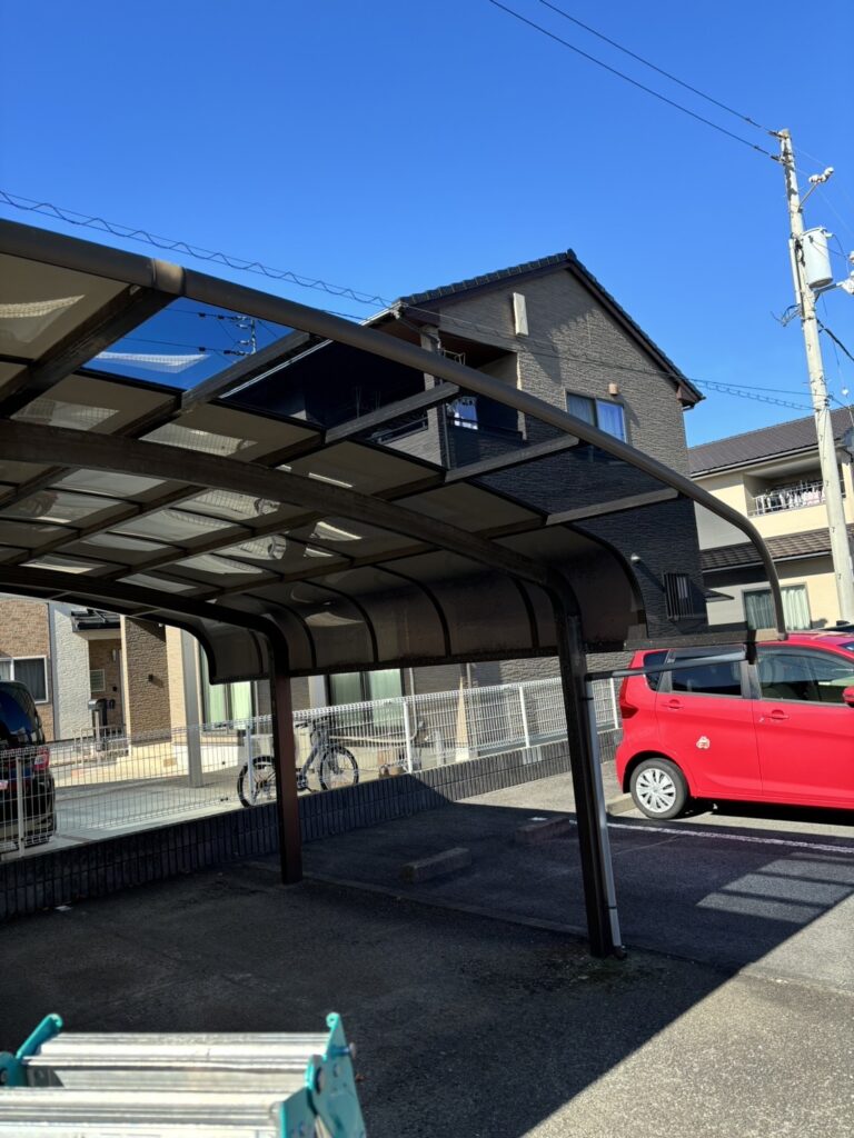 愛媛県伊予郡松前町にてカーポート(屋根材)修繕工事~松山市にて網戸張替え工事を行いました。
