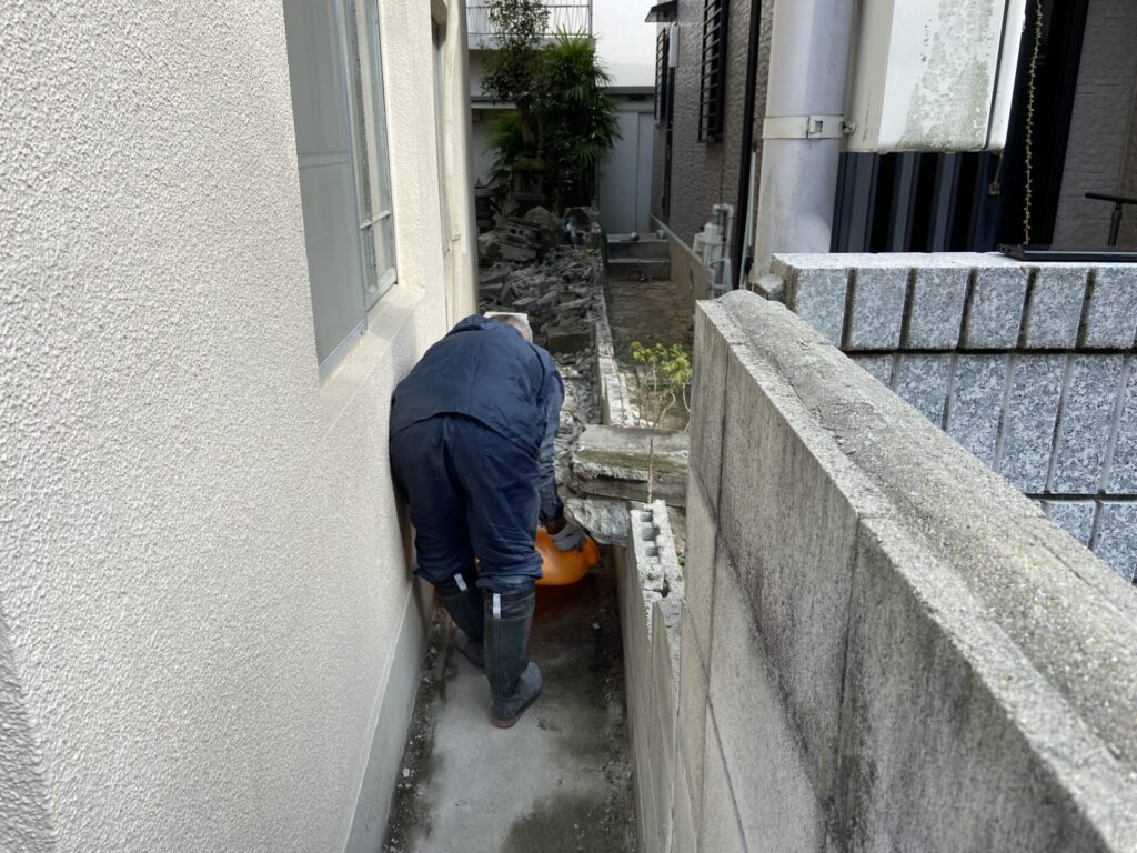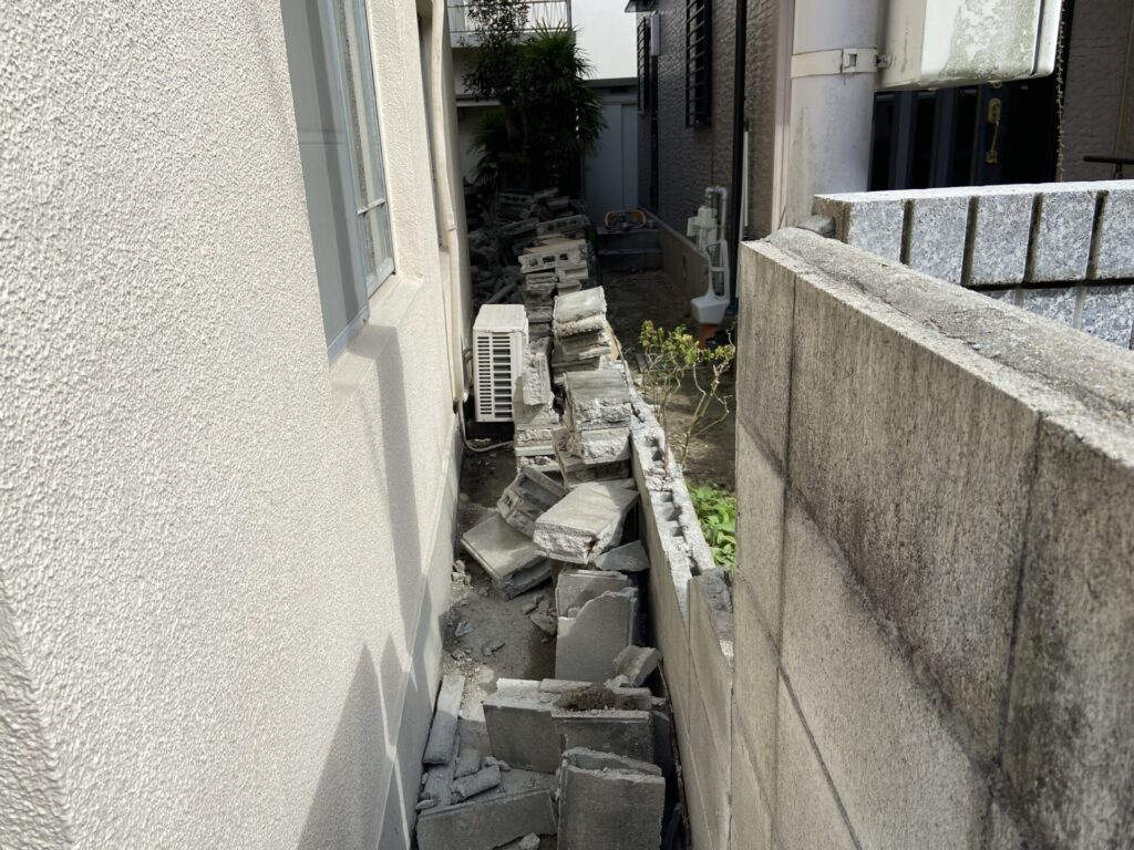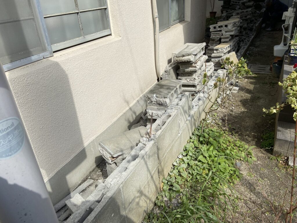 愛媛県松山市にてブロック塀積替え 高さの違いも調整で綺麗に積替え①