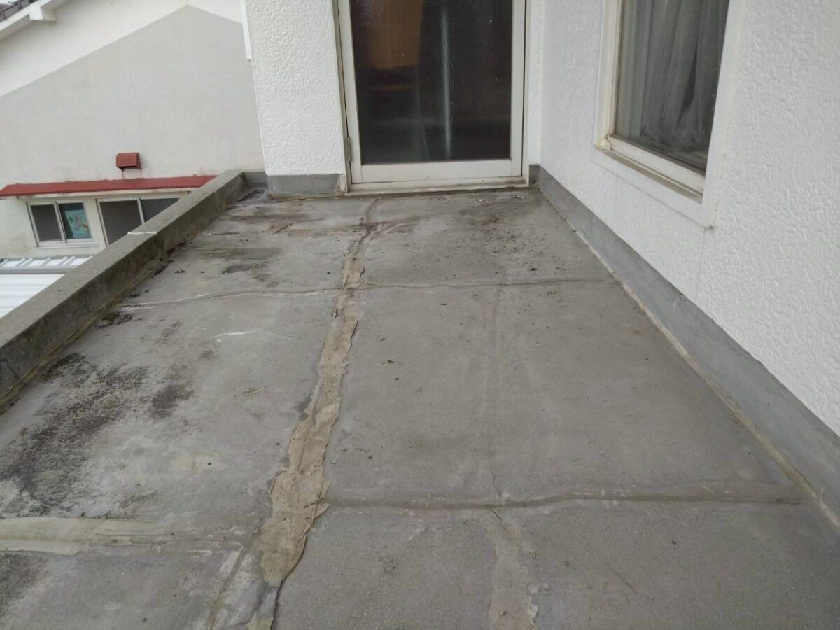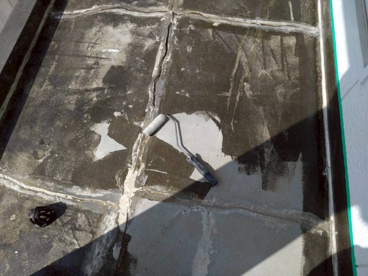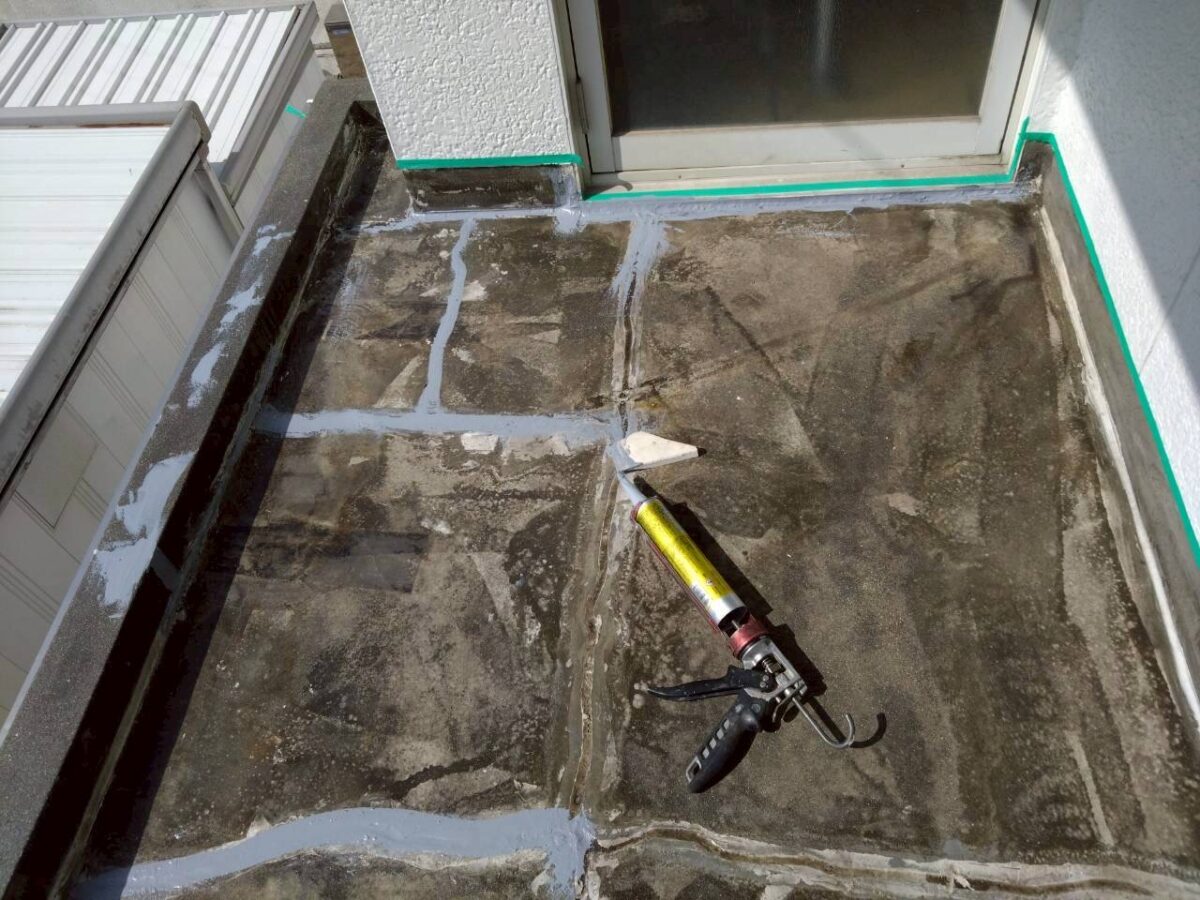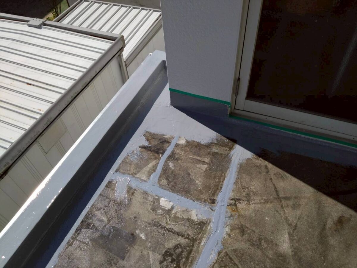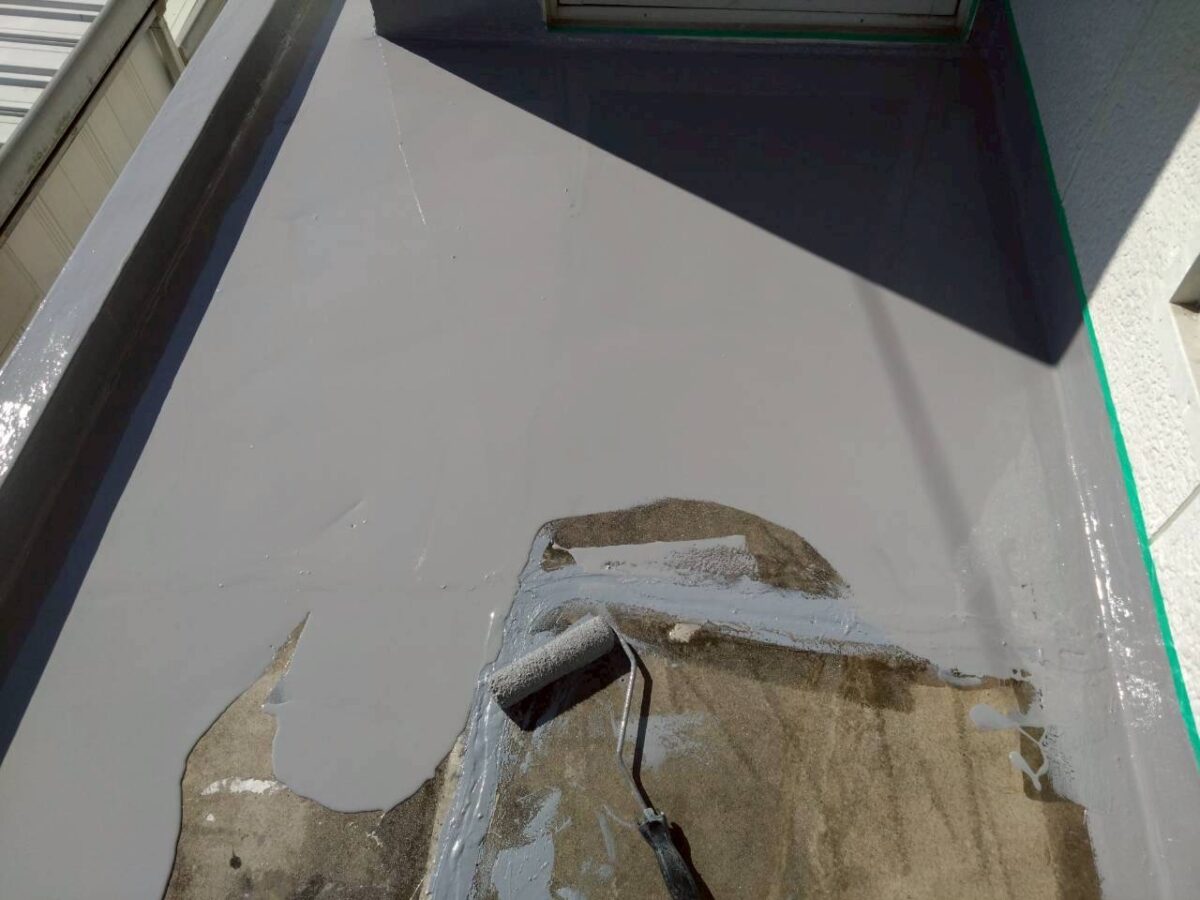 愛媛県松山市にお住いのH様邸にてバルコニーのウレタン防水工事を行っております。
