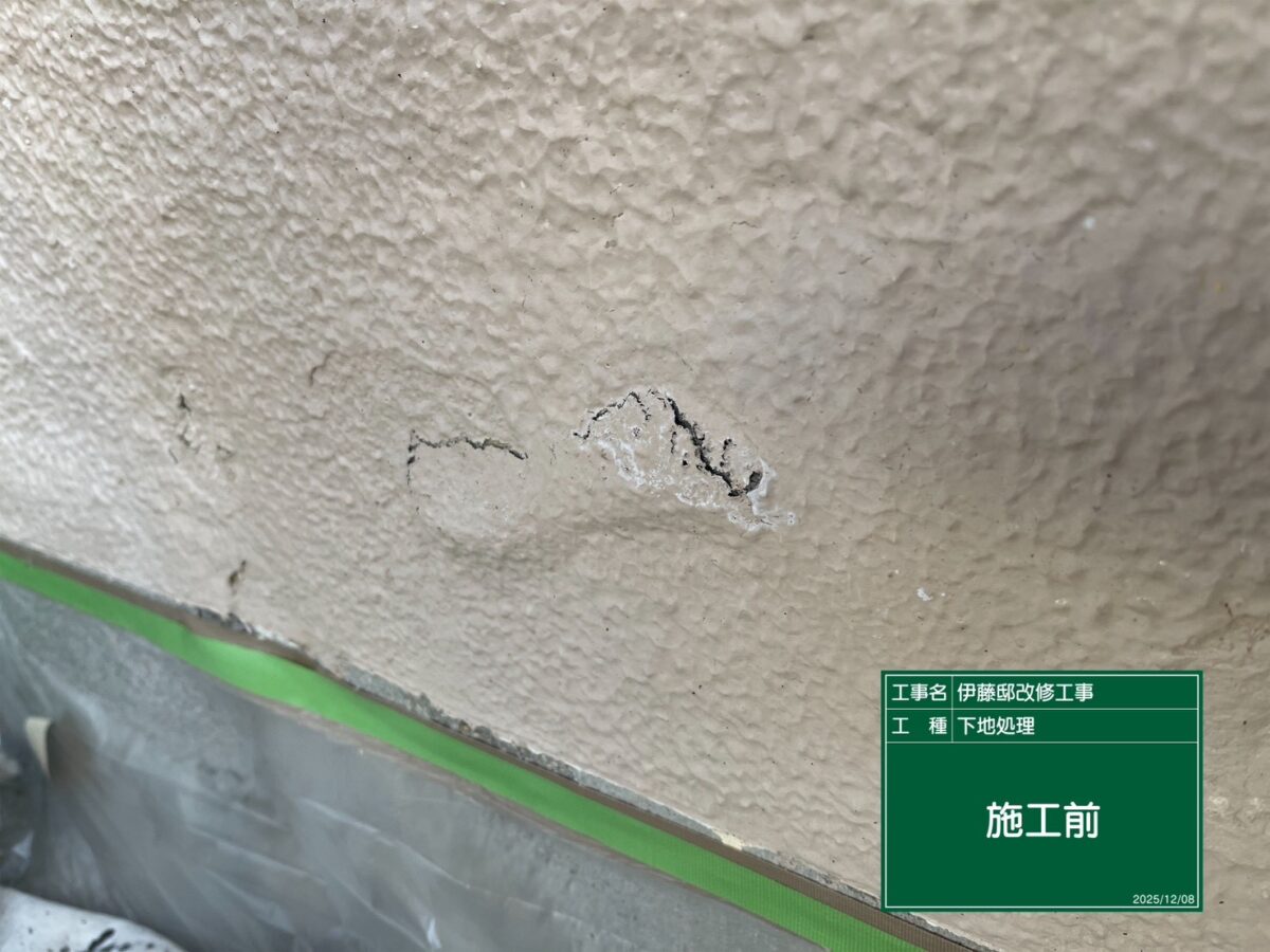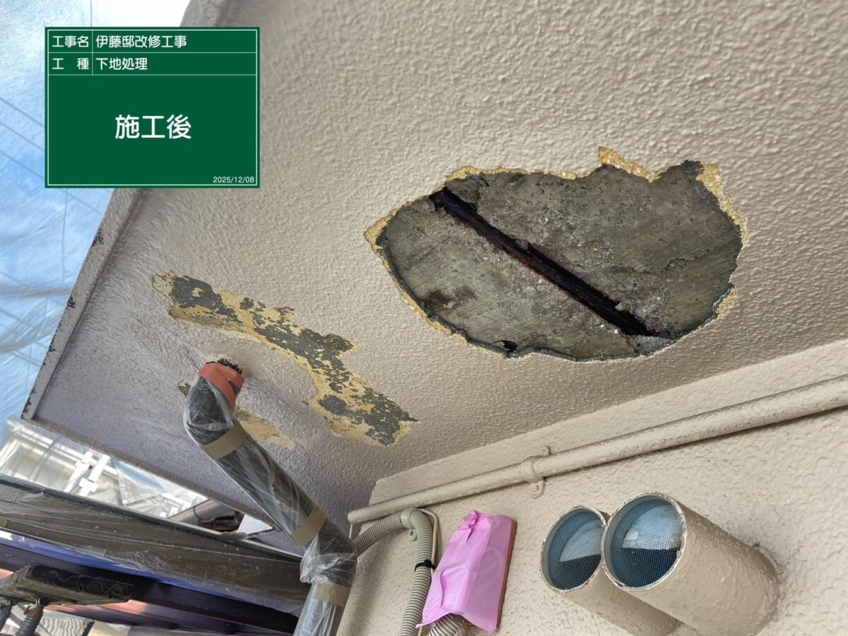 ケレンした個所にプライマーを塗布しメッシュを張りセメントで下地が均一になるように下地調整していきます。