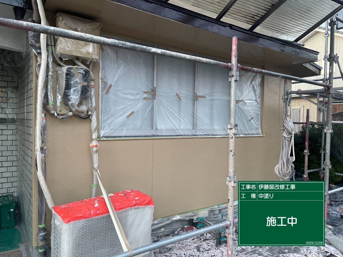 - 建物全体: 足場にメッシュシートを張り、近隣への塗料飛散を防ぎます。