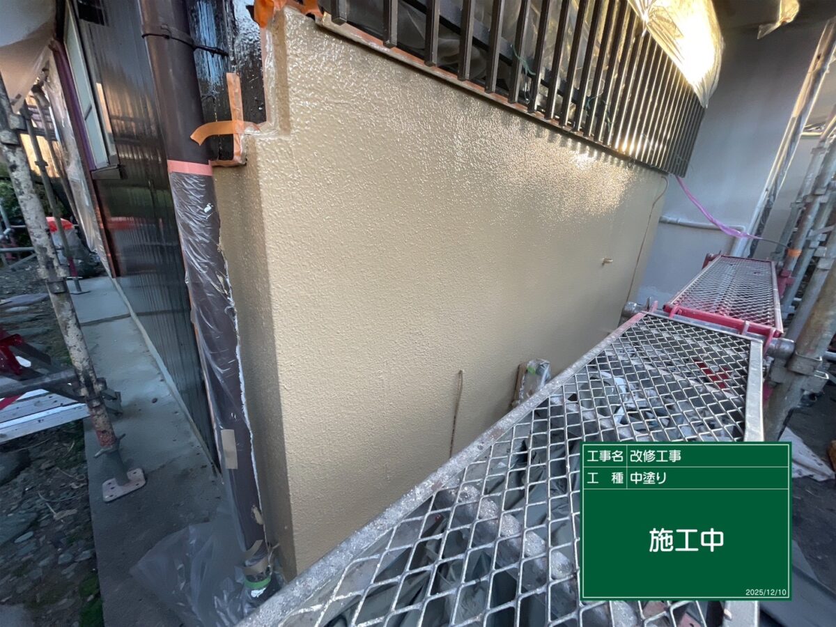 - 建物全体: 足場にメッシュシートを張り、近隣への塗料飛散を防ぎます。