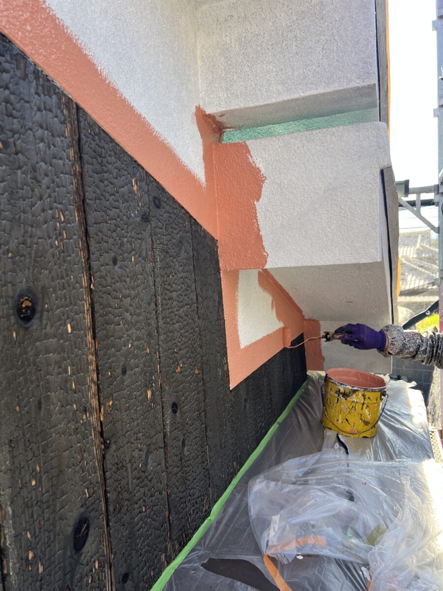 下塗り作業が終われば1日乾かしてトップ1回目(パーフェクトトップ)を塗布します!