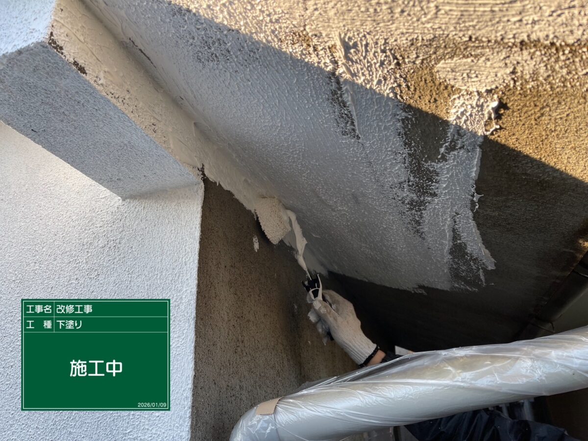 細かな箇所も下塗り材を丁寧に塗りこんでいきます!